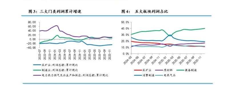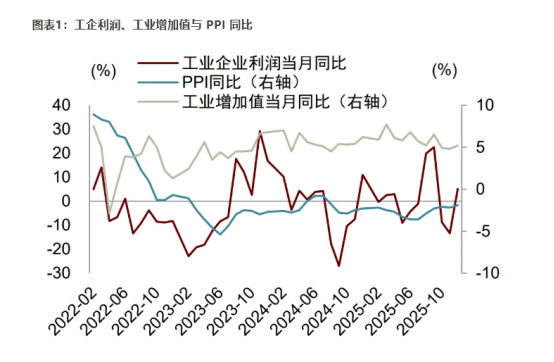 展望未来,在2025年工业企业利润增速以增长收官的背景下,今年有望延续回升态势。从政策层面来看,反内卷举措改善了企业竞争环境,缓解了无序竞争对盈利的挤压;需求层面,在大宗商品价格阶段性上行以及出口维持较高景气度的背景下,相关行业需求和价格中枢得到支撑,对工业利润形成一定提振。我们认为下一步主要观察两个方面,一是内需扩张相关政策节奏。一方面,实物消费支持政策有望提振扩围;另一方面,服务消费仍具较大增长潜力。二是外需与地缘风险,考虑到中美关系恶化风险显著降低,同时我国出口市场多元化的持续推进,外需在未来一段时间内将呈现较为稳定的状态。但仍需持续关注地缘风险及美联储降息路径对外部环境的影响。