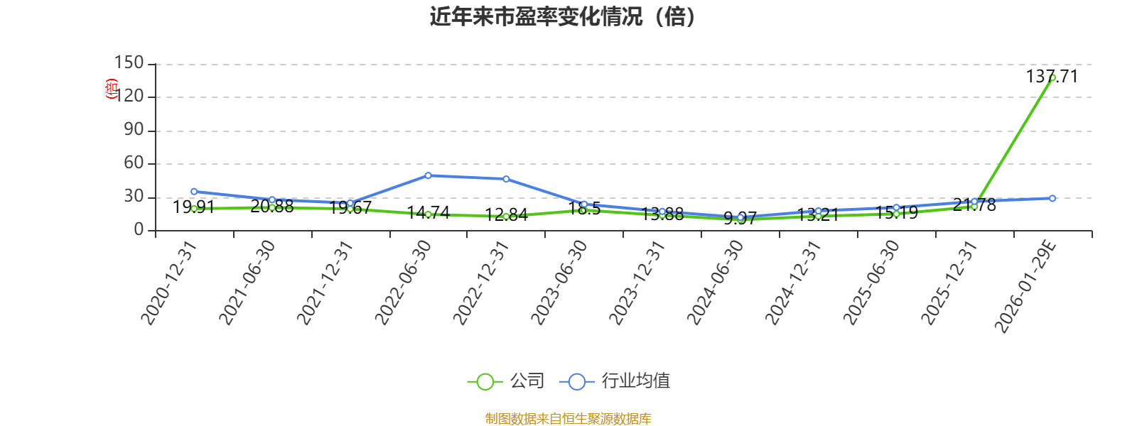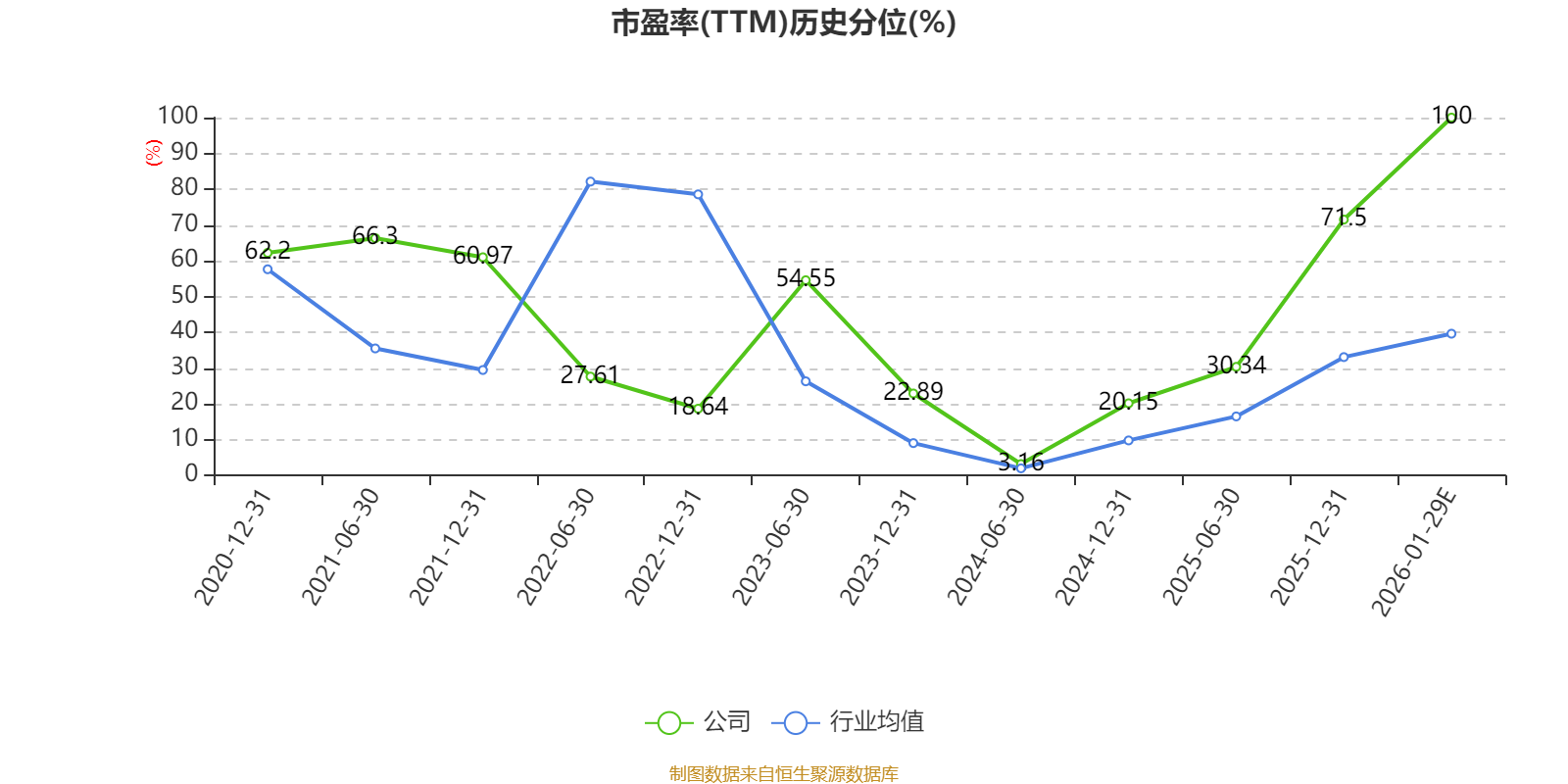 以本次披露业绩预告均值计算,公司近年市盈率(TTM)图如下所示: