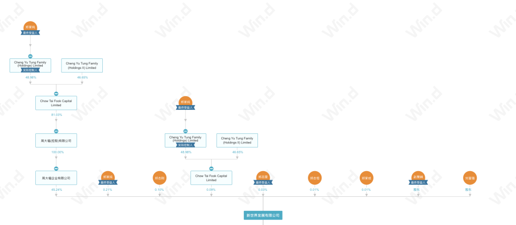 目前,新世界发展由香港最富有的家族之一郑氏家族控制。据Wind资讯数据显示,郑氏家族直接或间接共持有新世界发展逾45%的股份。