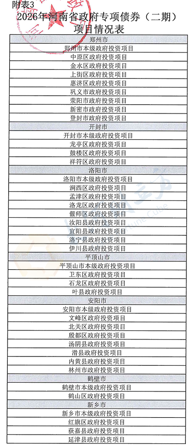 2026年河南省政府再融资专项债券(二期)一一2026年河南省政府专项债券(十期)和2026年河南省政府再融资专项债券(三期)一一2026年河南省政府专项债券(十一期),用于置换存量隐性债务。
