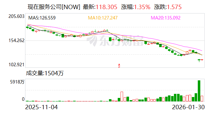 第14名ServiceNow收跌9.94%,成交63.52亿美元。该公司第四季度营收与每股收益超出预期,并强调其AI业务势头强劲、合作伙伴关系及50亿美元股票回购计划,但投资者聚焦于略为疲软的增长指引、高估值以及软件股整体受AI相关担忧拖累的普遍弱势。巨大的交易量及分析师目标价下调加剧了抛售。