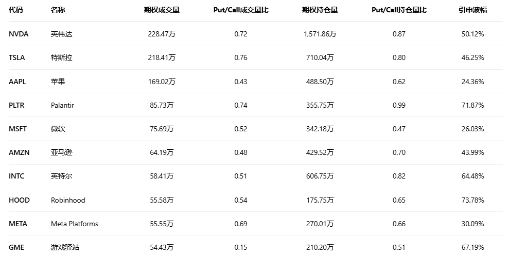 美股期权成交量排行榜前十