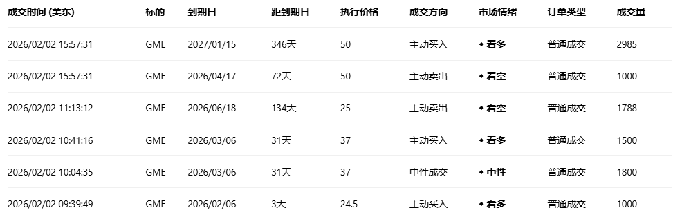 游戏驿站收涨8.25%,成交54.43万份期权合约,看跌/看涨成交量比升至0.15。GameStop首席执行官Ryan Cohen宣布计划进行一项变革性的大型收购,目标是规模更大的消费类上市公司,并表示正在进行某项重大项目,可能出售价值约5亿美元的比特币储备为收购提供资金。