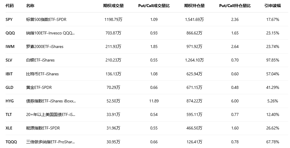 看跌/看涨持仓量比最高是美国超微公司,达到1.04。AMD发布第四季度财报营收103亿美元同比增长34%超预期但第一季度营收指引98亿美元未达部分分析师乐观预期股价盘后暴跌8%。