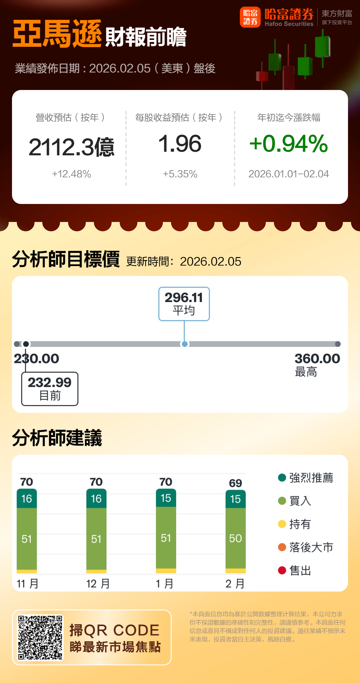 综合以上因素,亚马逊2025年Q4财报有望呈现"营收稳健增长、AWS加速、利润改善"的积极态势。短期内需关注AWS定价策略调整对客户留存的影响及资本开支对现金流的压制,但中长期来看,公司在电商领域的护城河、Prime会员体系的网络效应以及AWS在AI算力市场的领先地位,将支撑其持续创造价值。