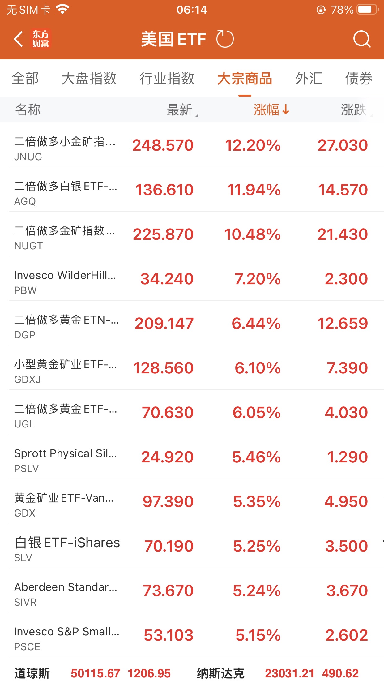 2倍做多白银ETF-ProShares(AGQ.US) 升 11.94%,成交额 1.55 亿美元。