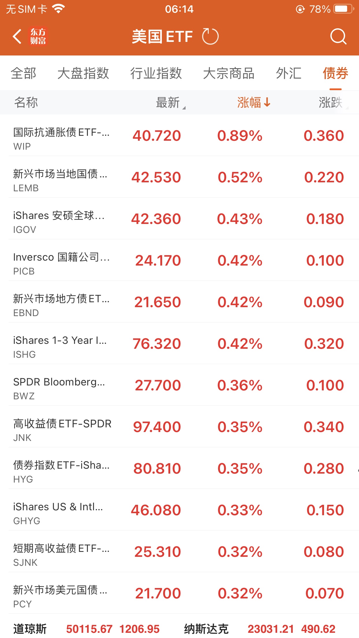 SPDR花旗国际政府抗通胀债券ETF(WIP.US) 升 0.89%,成交额 189.26 万美元。