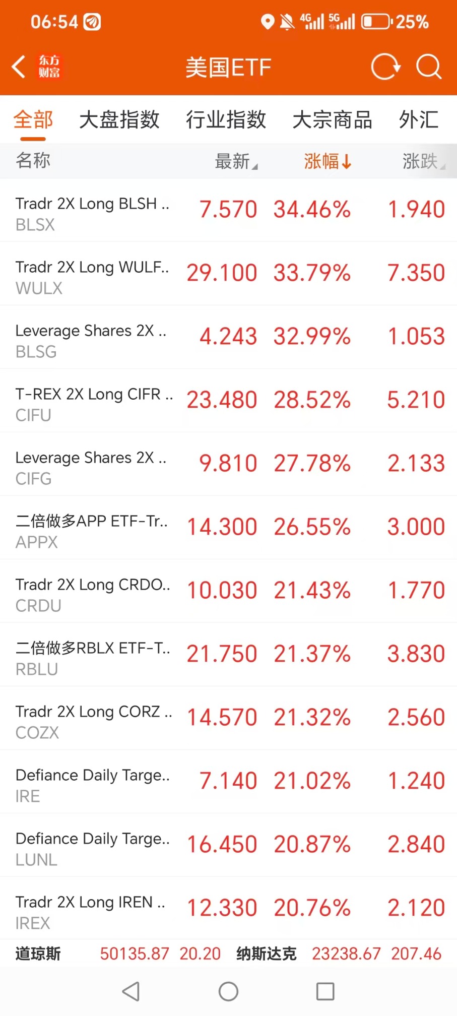 美股大型指数ETF升幅榜Top5