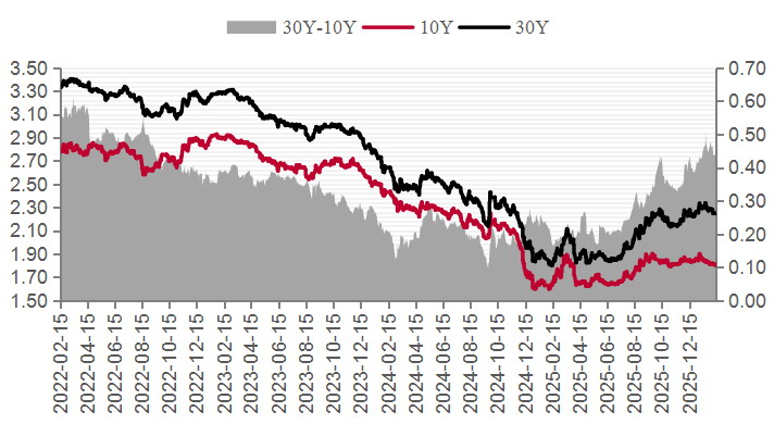 2026年,权益市场迎来开门红,商品市场表现火热,通胀预期升温,10年期国债收益率一度上行至1.9%。1月中旬,结构性降息落地后,市场进入政策空窗期,机构在债市跌出性价比后,配置力量逐步增大。临近春节,机构配置需求再度升温,债市短线维持偏强格局。