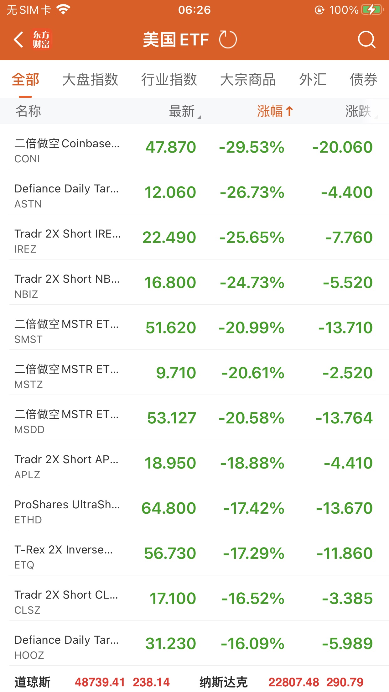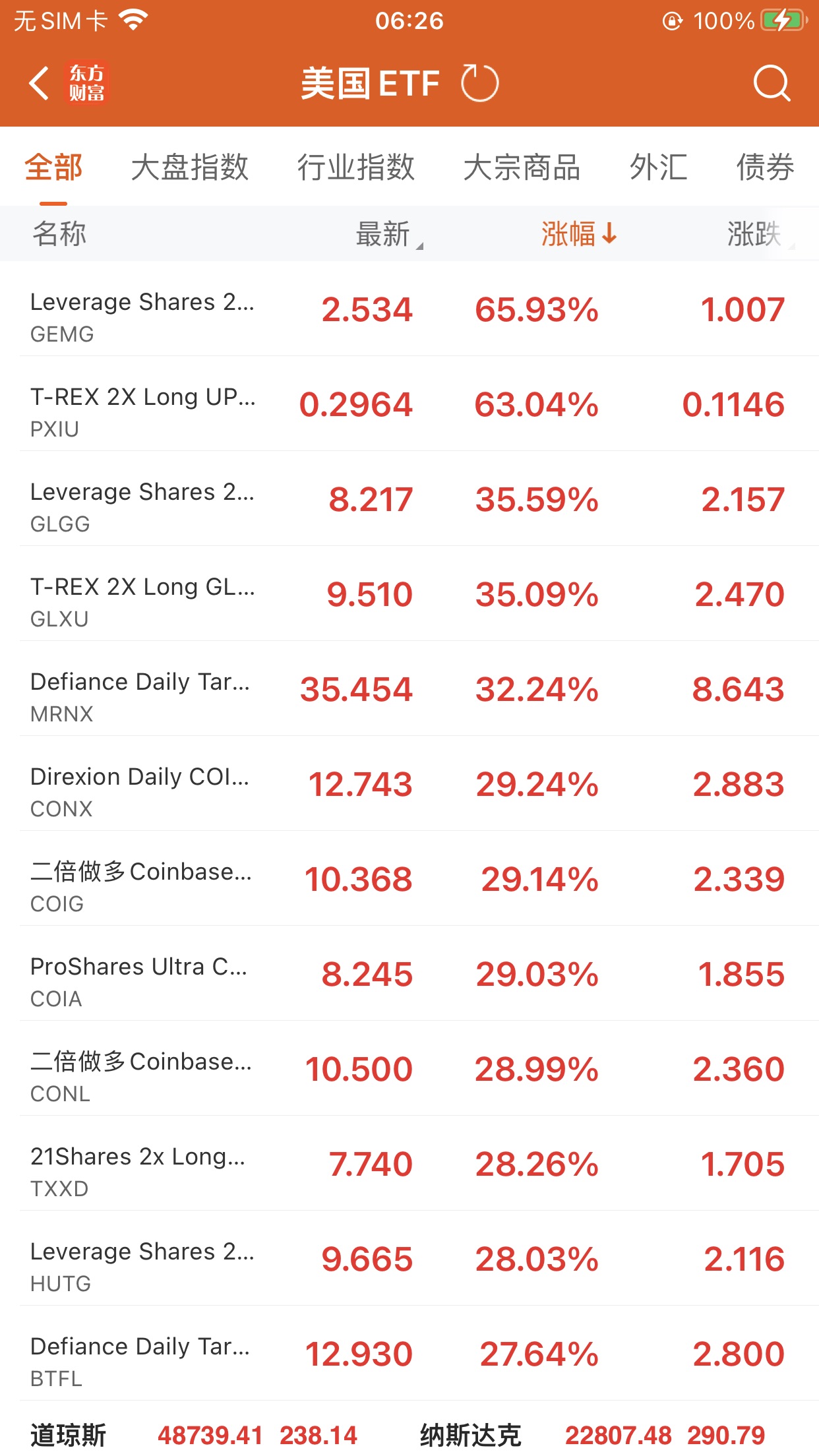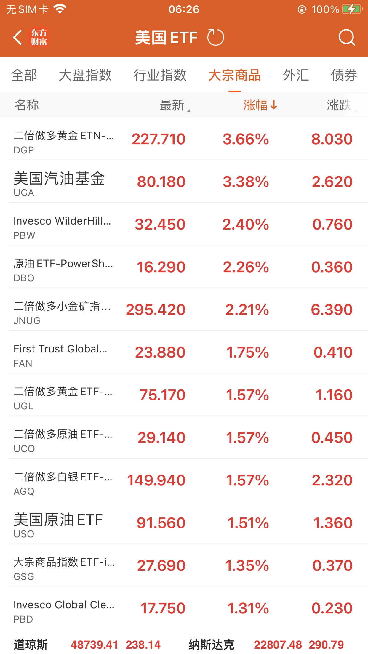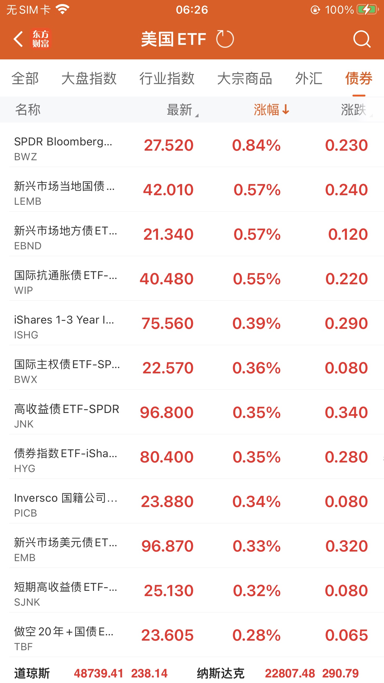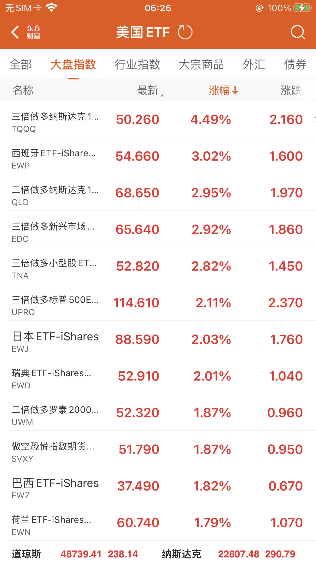 美股大型指数ETF升幅榜Top5