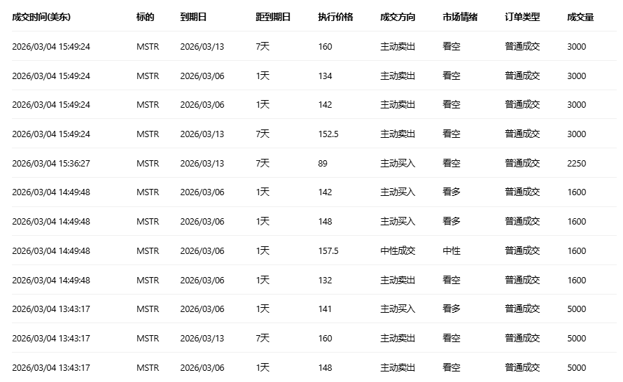 Strategy收涨10.37%,成交62.05万份期权合约,看跌/看涨成交量比降至0.61。Strategy在比特币突破7.3万美元推动下股价暴涨超10%。