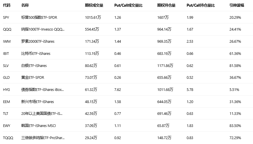 美股ETF期权成交量排行榜前十