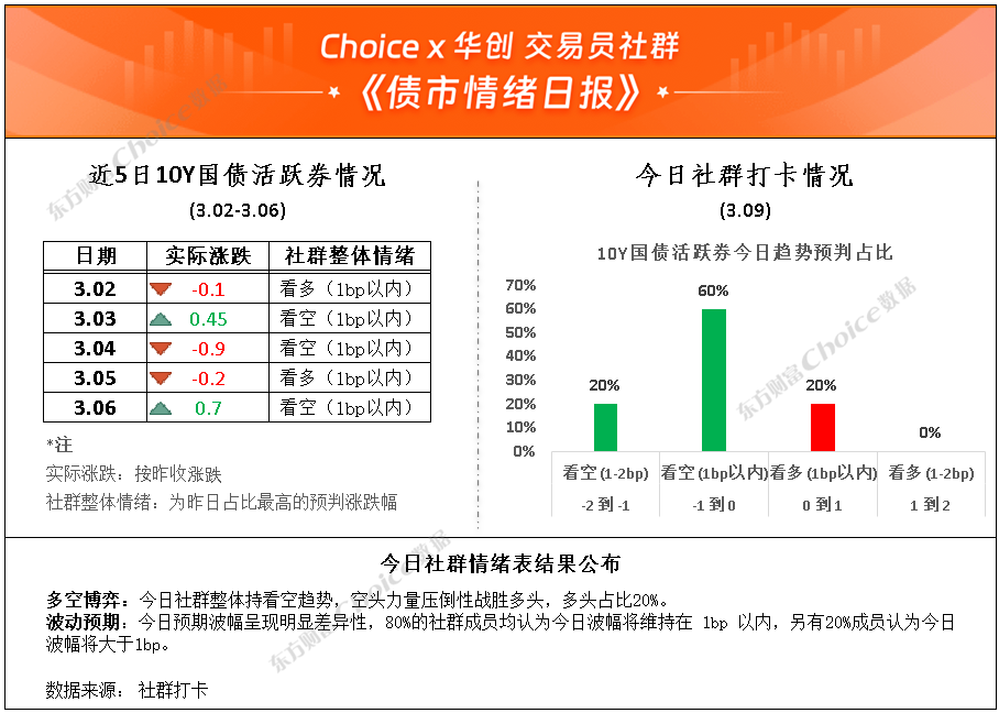 债市复盘:截至昨日17:30,利率市场收益率多数上行,10Y国债上行2.3bp至1.81%,30Y国债上行4.1bp至2.27%。信用市场收益率多数上行,2Y期AAA信用债上行1bp至1.63%。债市早盘下跌。中国央行开展485亿元7天期逆回购操作,净回笼865亿元。资金面中性,资金情绪指数50,资金价格较昨日上涨,DR001在1.33%附近,DR007在1.45%附近。 当天银行为买方主力,证券呈卖出趋势,保险跟随行情变动多空分歧较大。