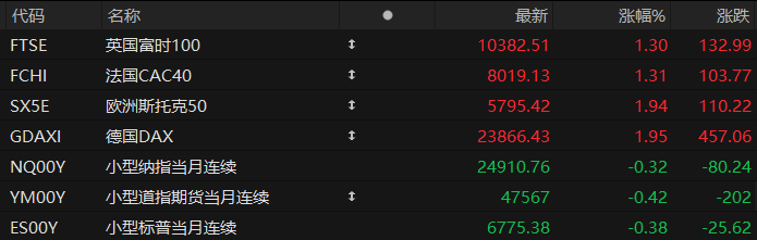 周二盘前,美股三大股指期货齐跌,欧洲主要指数普遍上涨。截至发稿,纳斯达克100指数期货跌0.32%,道指期货跌0.42%,标普500指数期货跌0.38%。