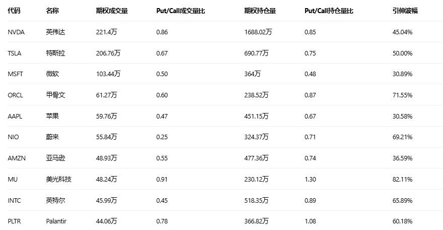 美股期权成交量排行榜前十