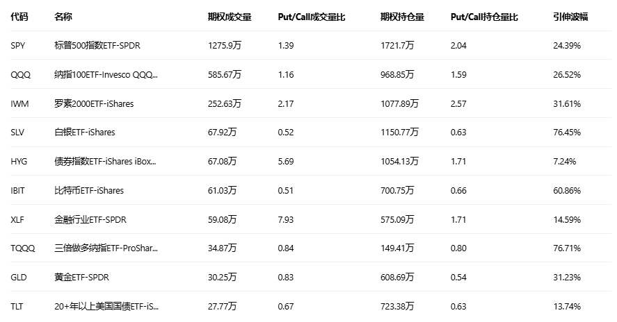 美股ETF期权成交量排行榜前十