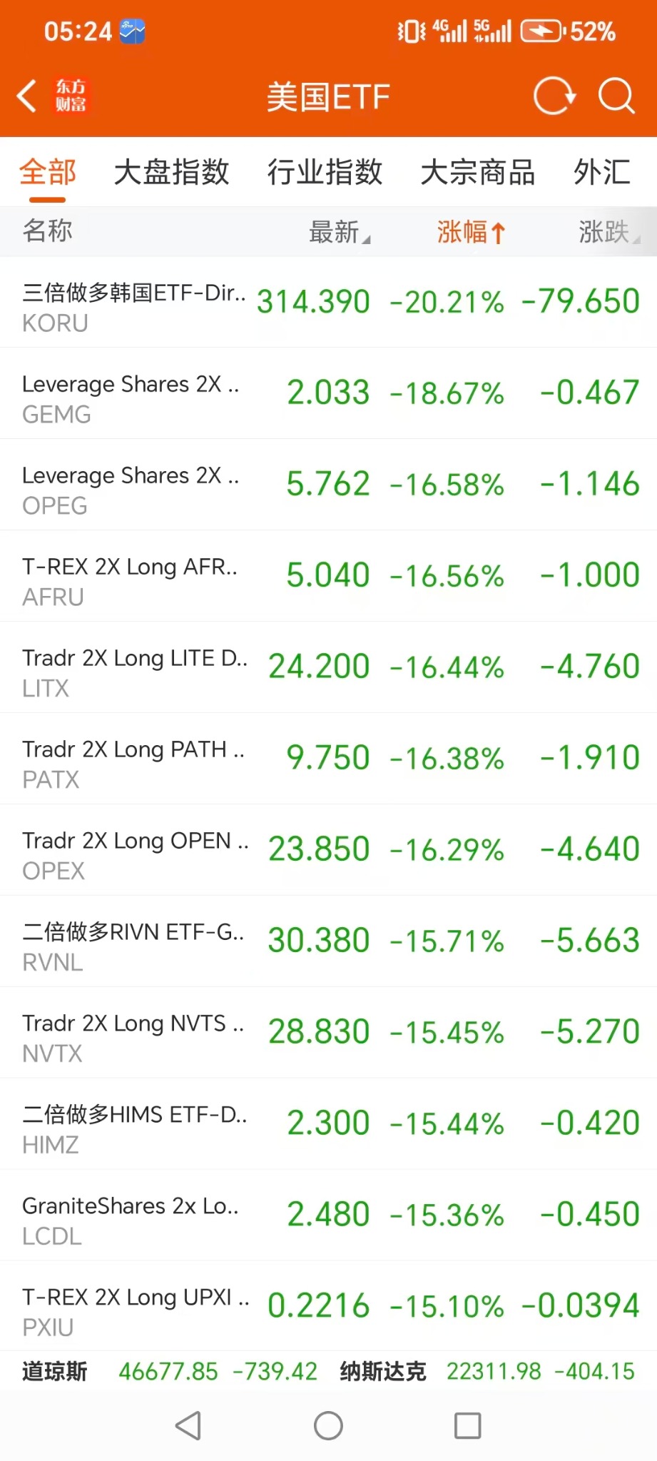 Direxion Daily South Korea Bull 3X Shares(KORU.US) 跌超 20.33%,成交额 6.14 亿美元。