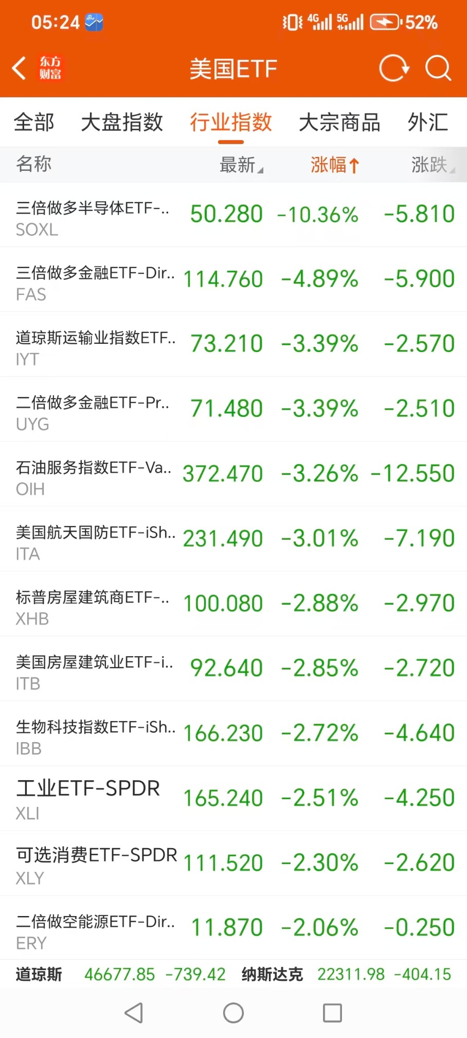 三倍做多金融指数ETF-Direxion(FAS.US) 跌超 4.89%,成交额 1.89 亿美元。