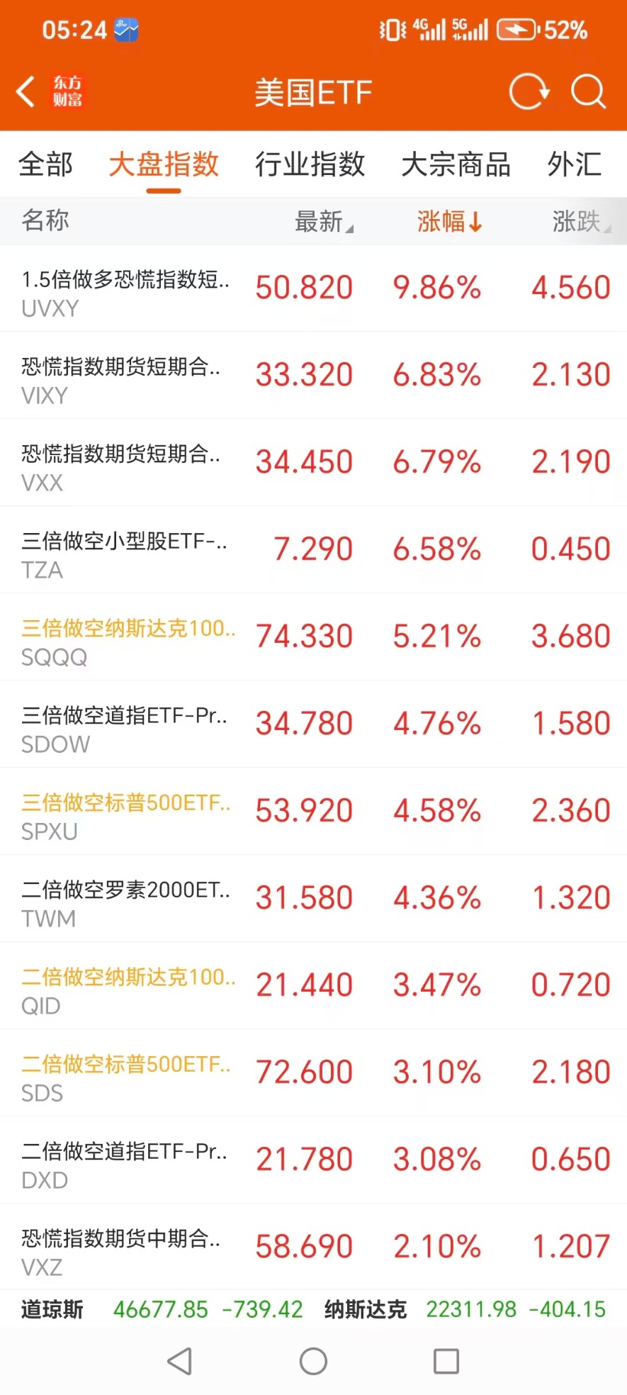 三倍做空纳指ETF-ProShares(SQQQ.US) 升超 5.21%,成交额 39.68 亿美元。