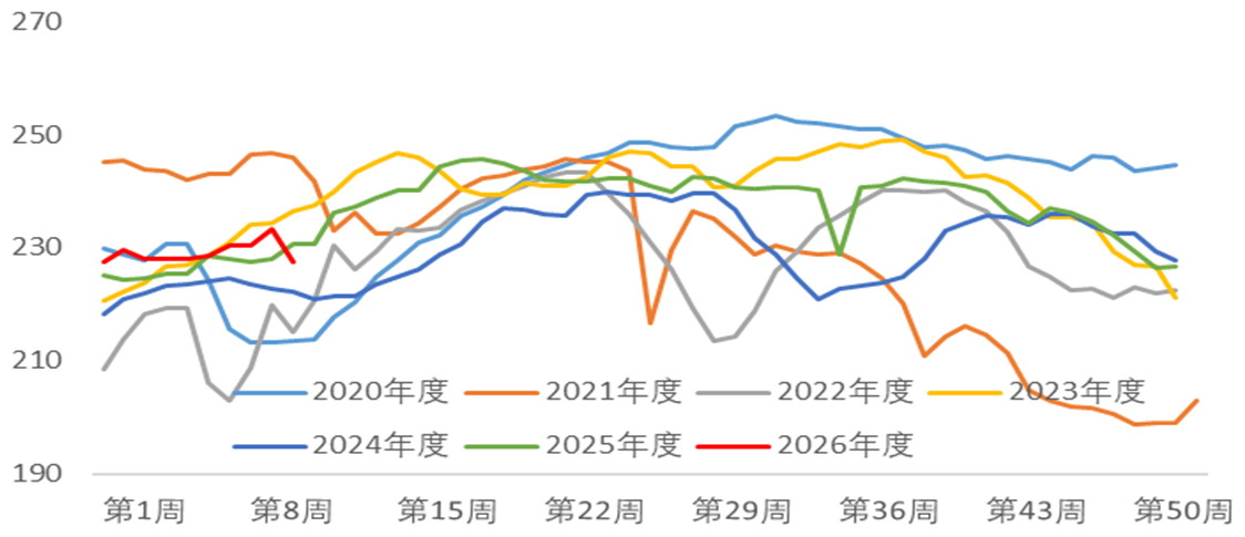 与港口天量库存形成鲜明反差的是,同期247家样本钢厂进口矿库存降至9011.57万吨,周度回落73.52万吨,创下近年来同期新低。“港口累库”与“钢厂去库”的分化,深刻揭示了当前产业的疲弱现实:在利润持续挤压下,钢厂已完全停止主动补库,转而执行“随用随采”的极致低库存策略。