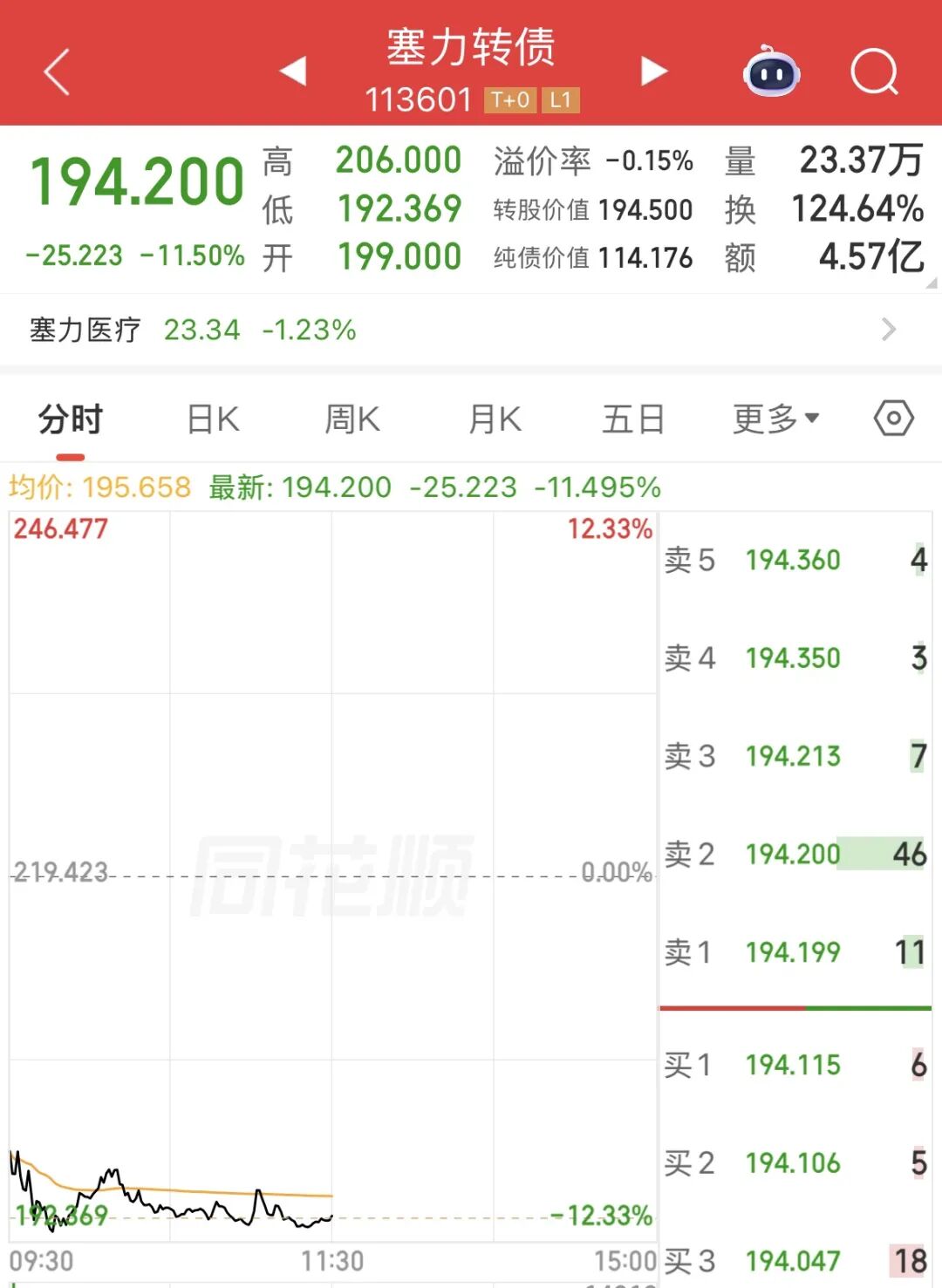 【导读】提前赎回,塞力转债上午盘中跌超12%