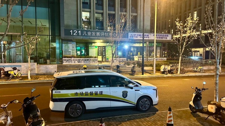 在现场,第一时间赶到的杨浦区市场监管局执法人员通过手机号码联系上了工作室负责人。电话中对方表示,自己目前身在南京,无法及时赶来接受调查,估计约5个小时后才能赶到上海。对此,市场监管执法人员已要求负责人连夜尽快赶回上海,配合开展现场检查,并将依法予以处置。