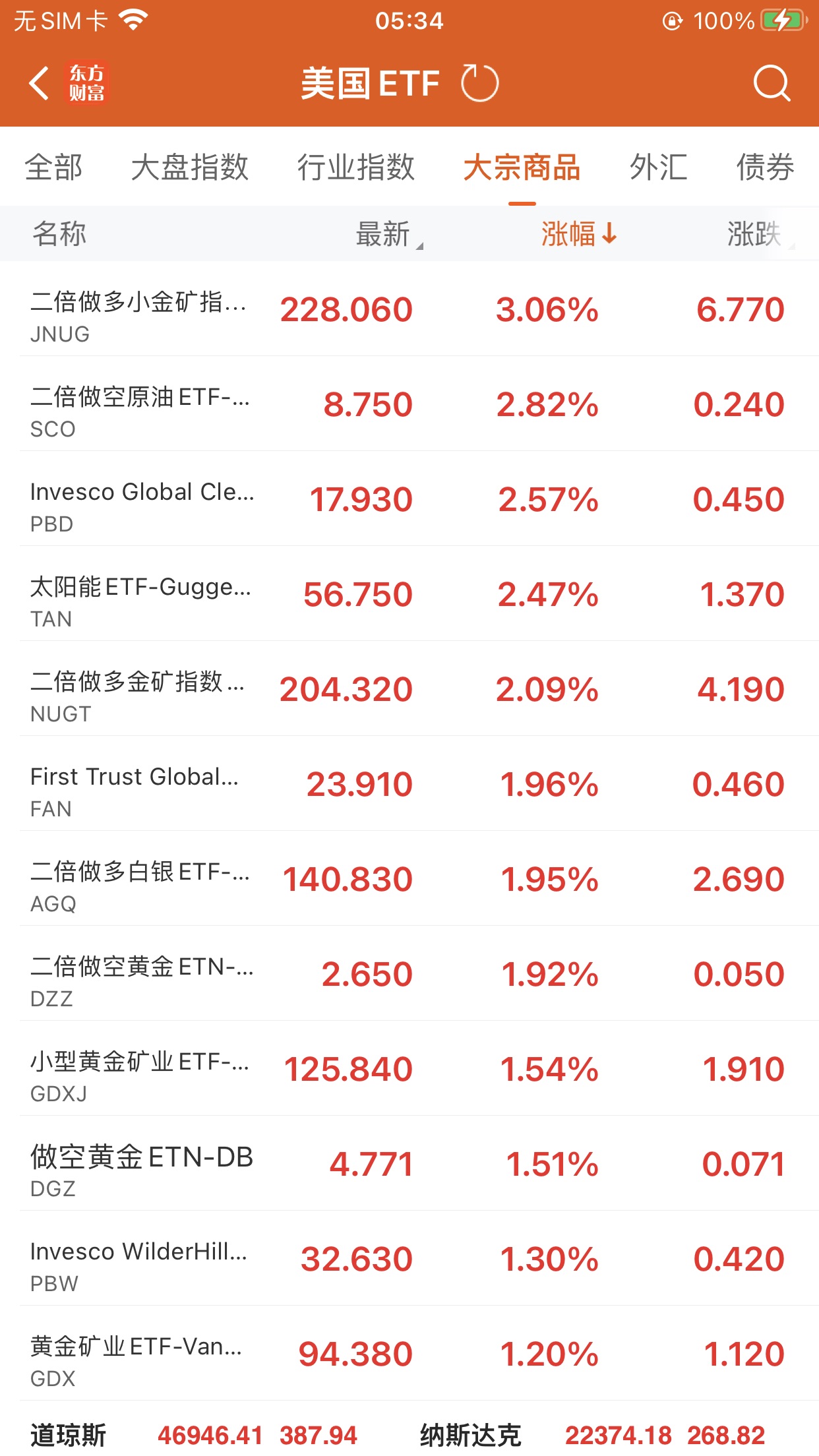 2倍做多金矿指数ETF-Direxion(NUGT.US) 升超 2.09%,成交额 1.24 亿美元。