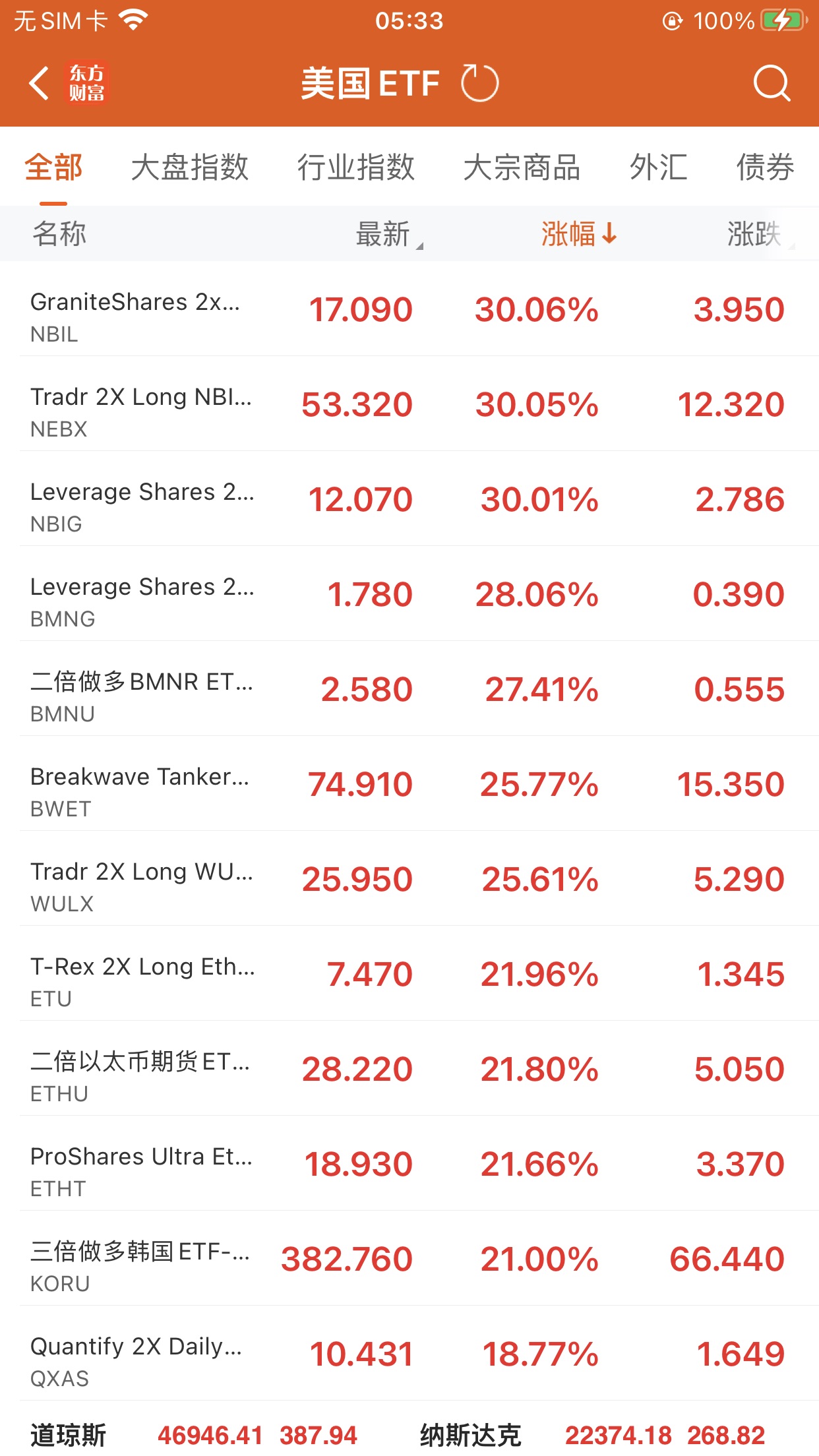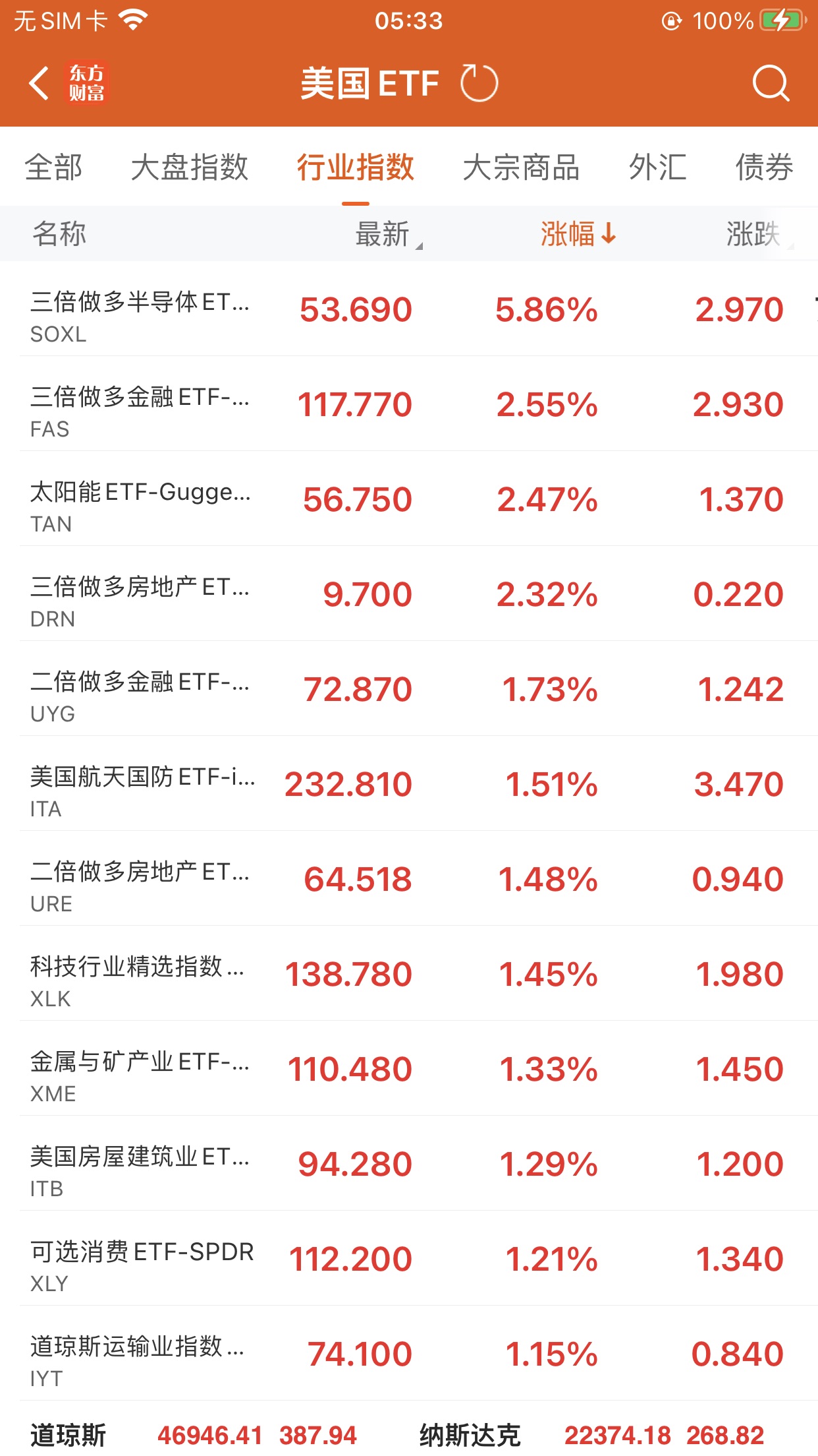 美股ETF升幅榜Top5