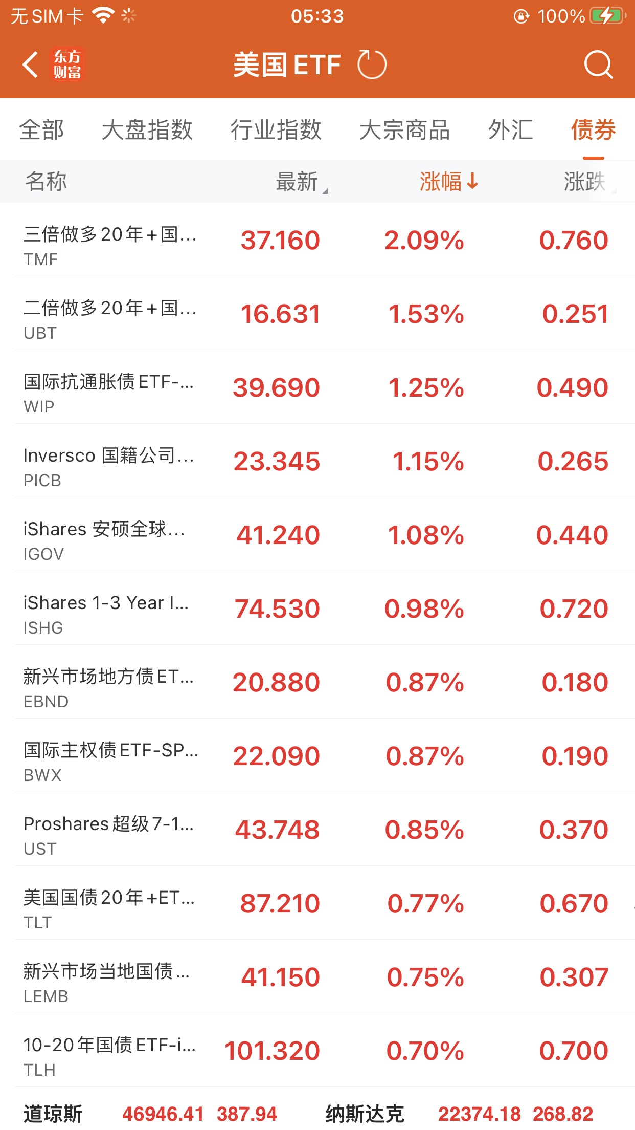 债券型ETF升幅榜Top5