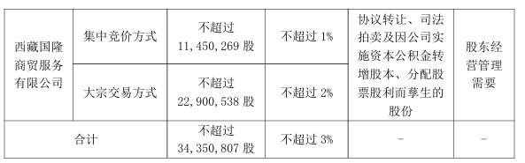 若以最新股价20.76元/股估算,西藏国隆商贸服务有限公司本轮减持最多可减持套现约7.13亿元。