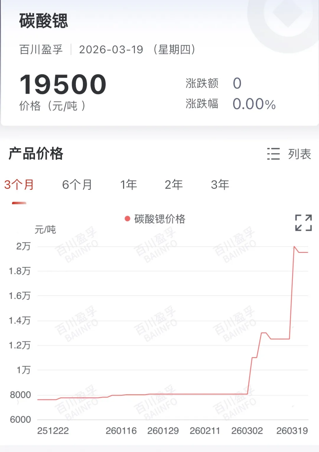 据百川盈孚数据,3月19日,98%碳酸锶市场均价为1.95万元/吨,本月涨幅超142%,较年初上涨152%,同比涨幅26%。