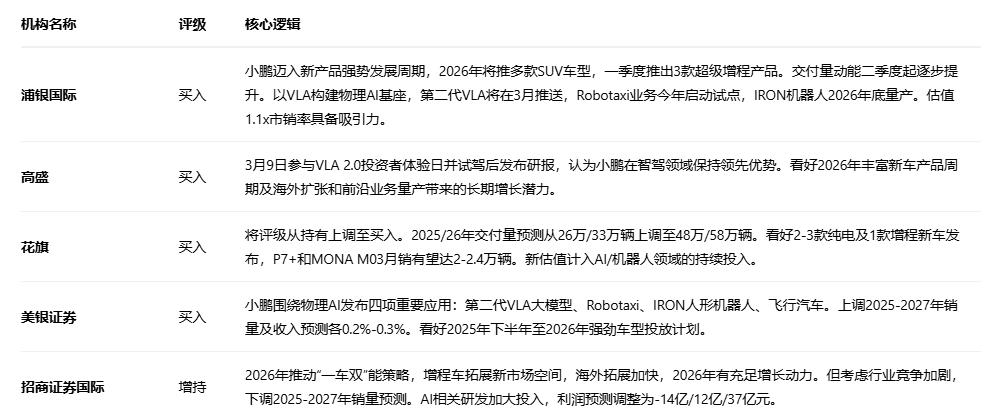 小鹏汽车在25年Q4有望扭亏为盈,公司依靠主销车型保障规模,并凭借领先的智能驾驶技术和即将落地的Robotaxi、机器人等“物理AI”业务构建长期竞争力。2026年,面对激烈市场竞争,其一季度业绩指引及新车型表现将成为关键。
