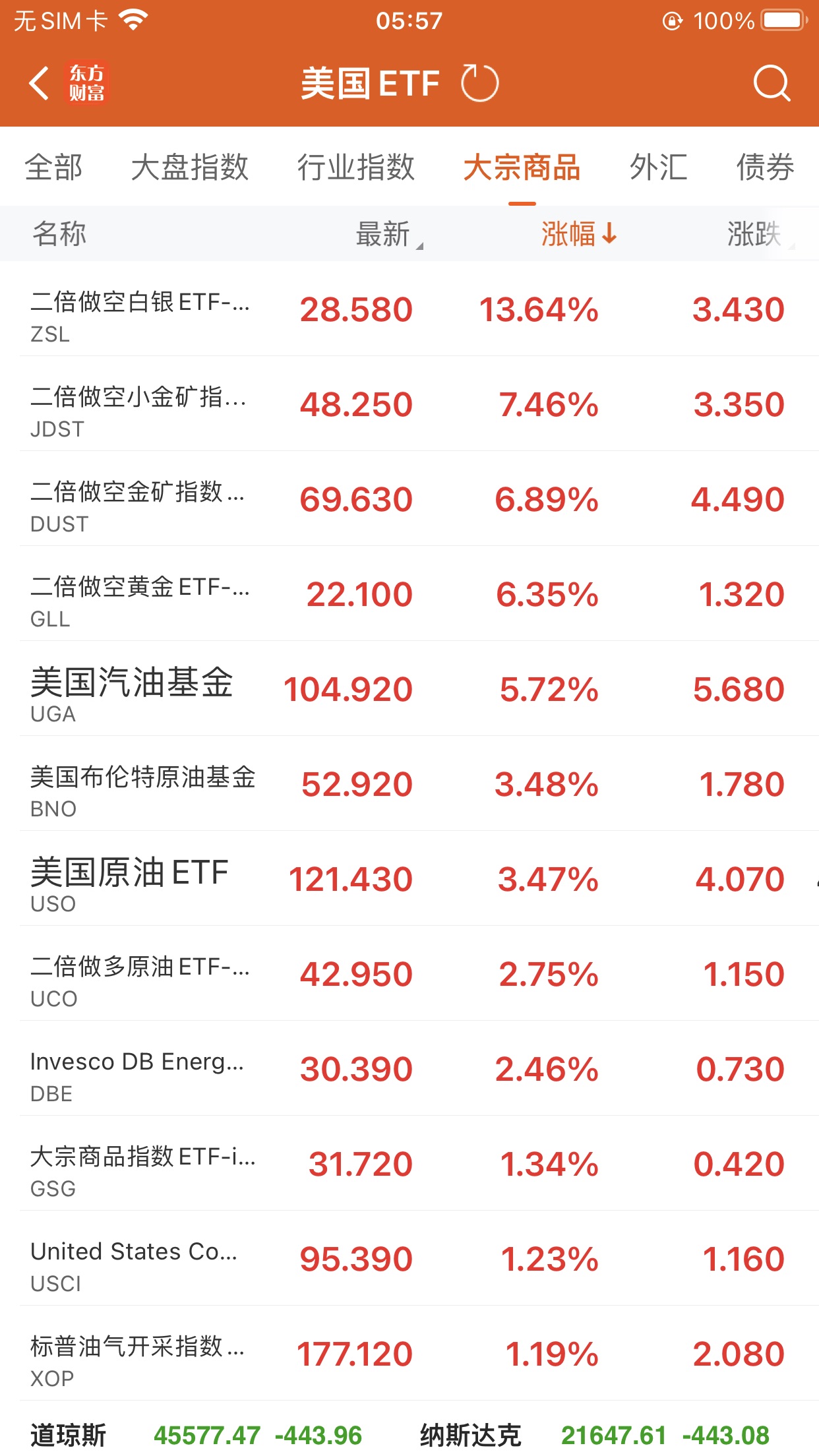 美股大型指数ETF升幅榜Top5