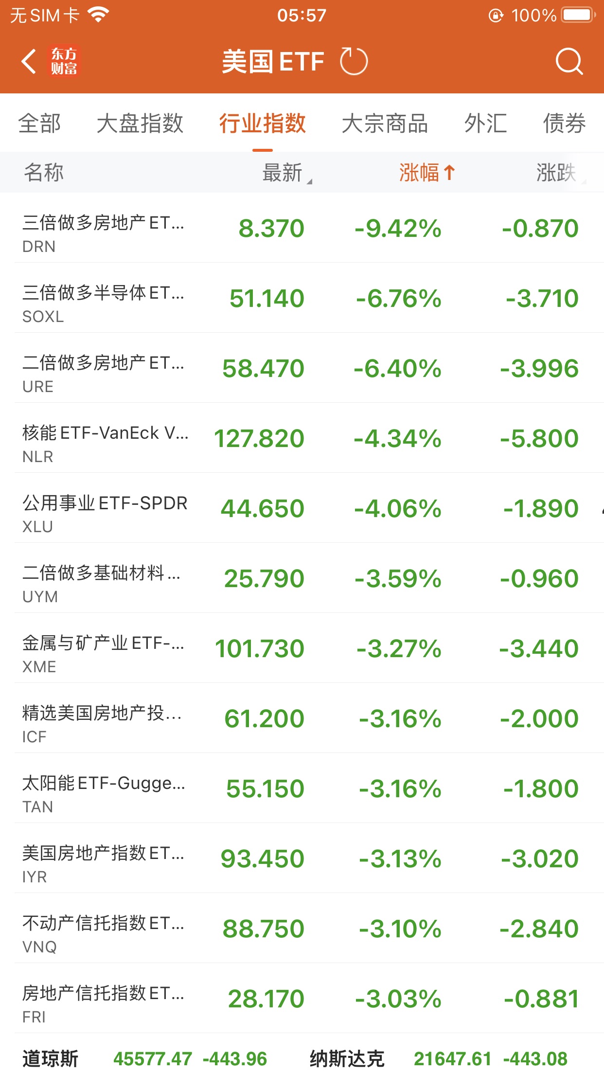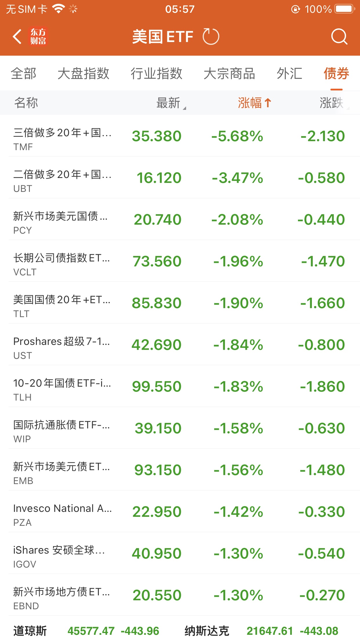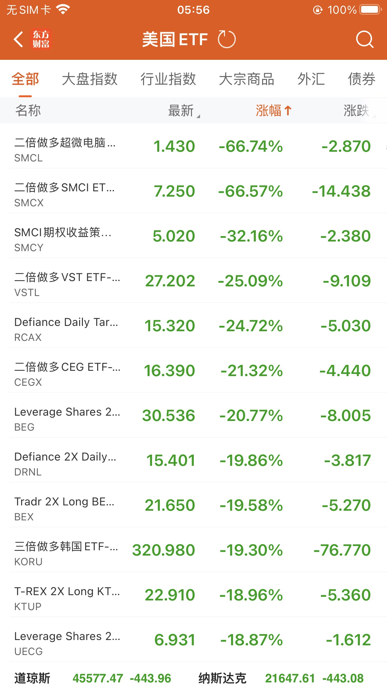 美股ETF跌幅榜Top5