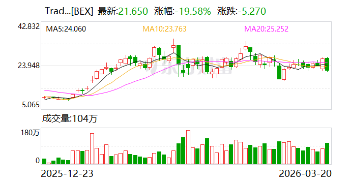 2倍做空BE ETF-Tradr(BEZ.US) 升超 19.01%,成交额 283.17 万美元。