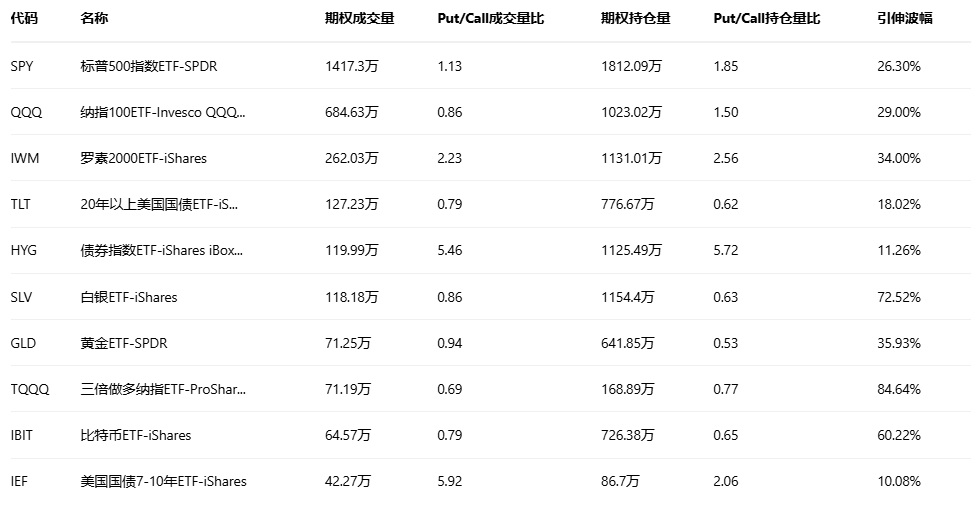 美股ETF期权成交量排行榜前十
