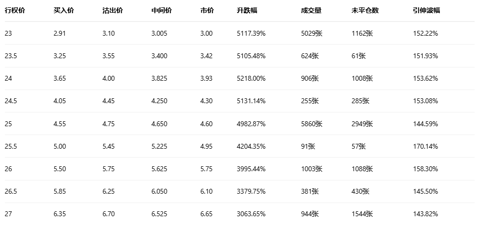 期权成交量排行榜