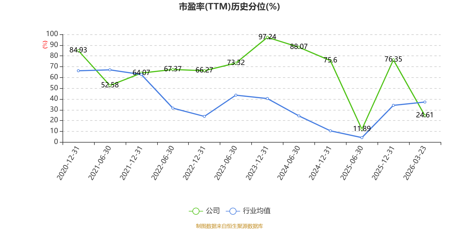 市盈率、市净率为负时,不显示当期分位数,会导致折线图中断。