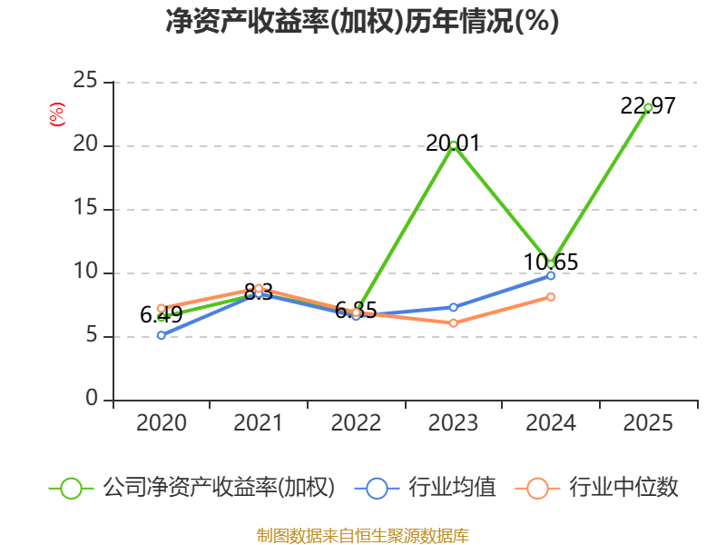 数据显示,2025年公司加权平均净资产收益率为22.97%,较上年同期上升12.32个百分点。公司2025年投入资本回报率为22.18%,较上年同期上升20.98个百分点。