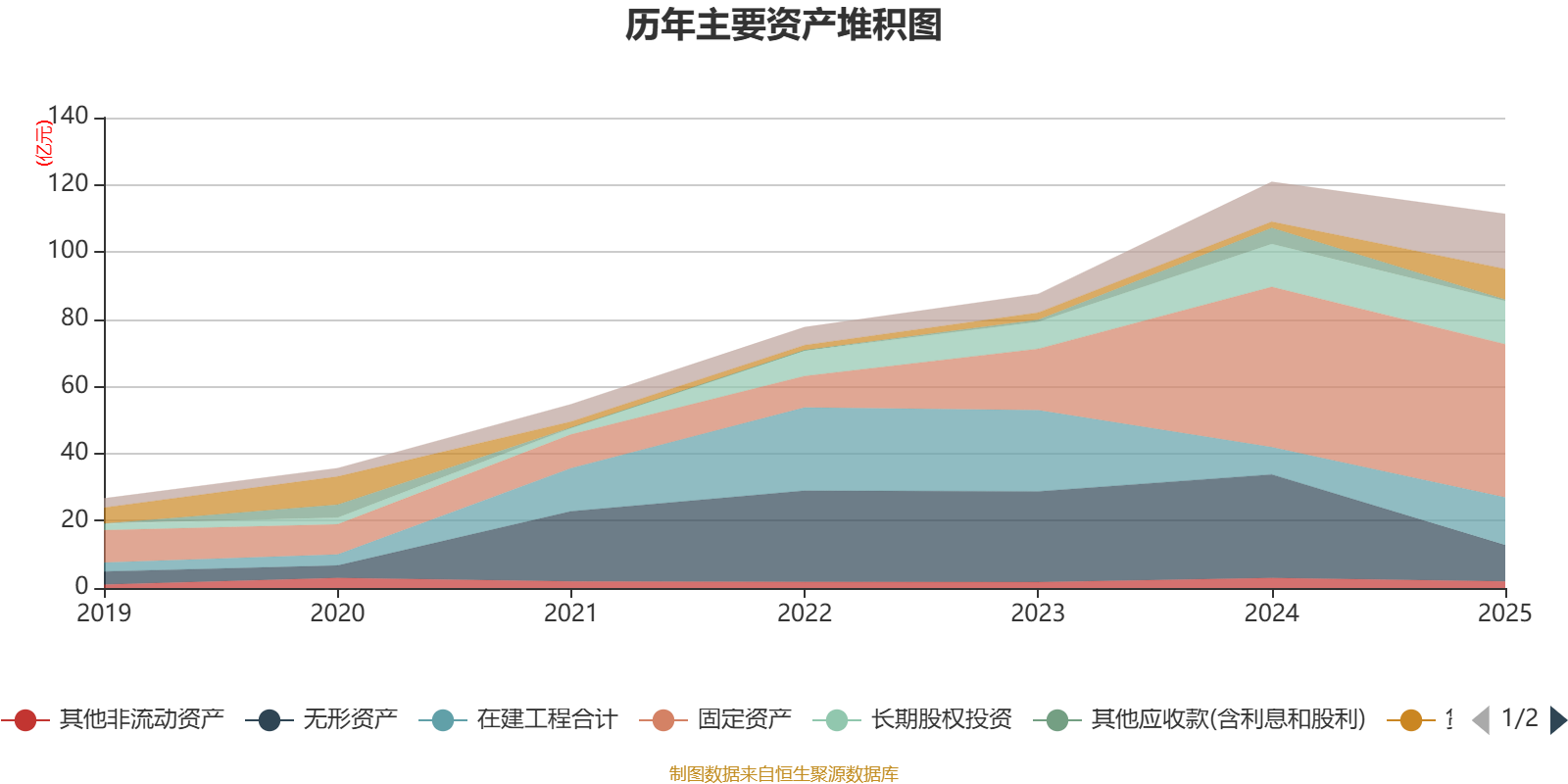 资产重大变化方面,截至2025年末,公司无形资产较上年末减少65.09%,占公司总资产比重下降15.82个百分点;货币资金较上年末增加392.91%,占公司总资产比重上升6.62个百分点;在建工程合计较上年末增加74.3%,占公司总资产比重上升6.02个百分点;其他应收款(含利息和股利)较上年末减少90.78%,占公司总资产比重下降3.54个百分点。