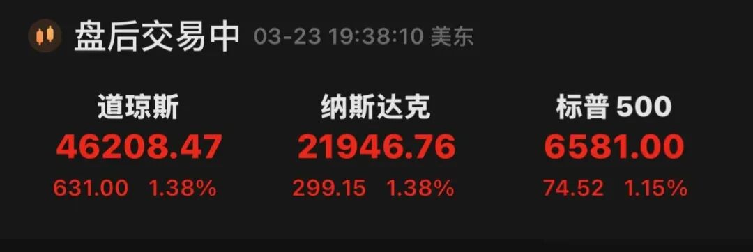 当地时间3月23日(周一),美以伊紧张局势缓和为市场提供了喘息空间,美股三大指数集体收涨。