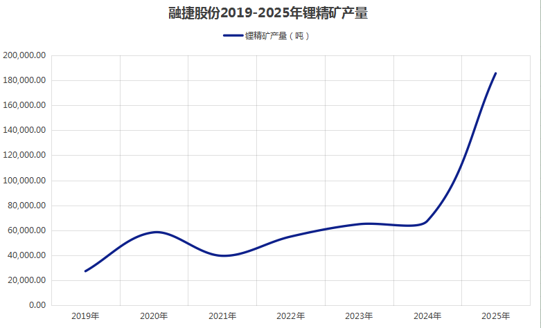 “外运选矿”下,2025年融捷股份锂精矿产量由此前6.75万吨的峰值,迅速增加至18.56万吨,也达到了上述105万吨采矿产能的理论最大产量区间。