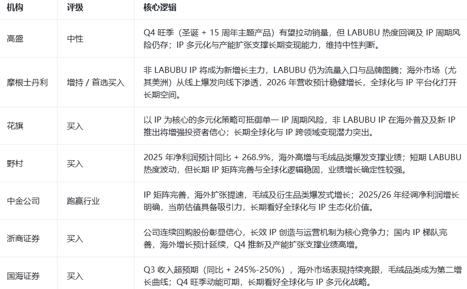 当前国内潮玩市场竞争日趋激烈,名创优品、52TOYS等品牌持续发力,进一步挤压市场空间。在此背景下,IP矩阵多元化成为泡泡玛特对冲单一IP依赖、稳定盈利能力的关键。2025年Q4,公司重点推广PUCKY、星星人等非核心IP,多IP协同发展成效显著。据2025年半年报披露,上半年THE MONSTERS营收48.1亿元,MOLLY、SKULLPANDA等4大IP营收均突破10亿元,13大艺术家IP收入破亿,多IP协同效应有效支撑全年业绩增长,市场将密切关注其多IP运营成效能否持续对冲行业调整压力。
