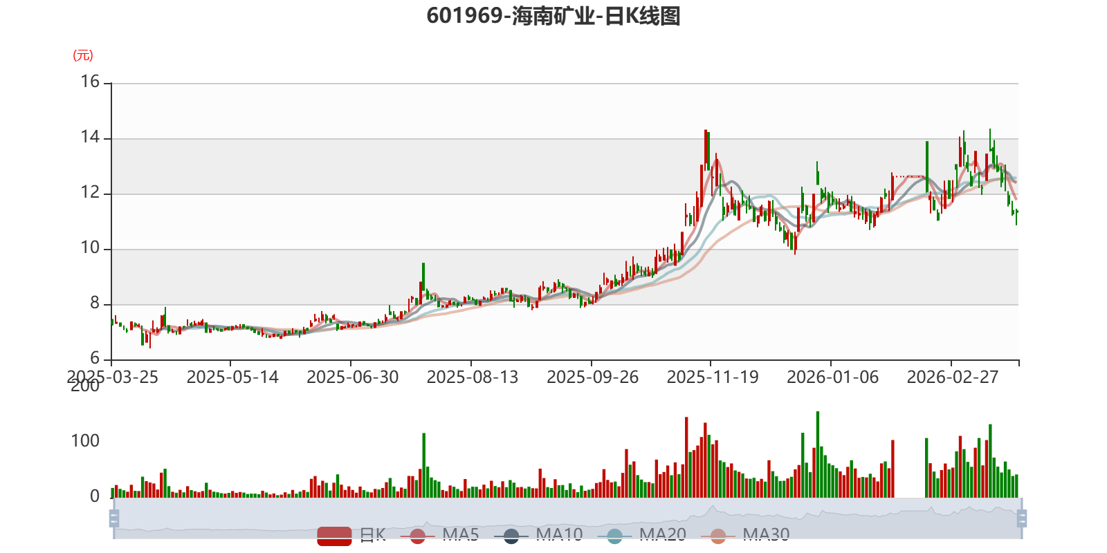 值得注意的是,中登公司数据显示,截至2026年3月20日,海南矿业33.17%股份处于质押状态。年报显示,第一大股东上海复星高科技(集团)有限公司质押7亿股公司股份,占其全部持股的73.76%;第二大股东海南海钢集团有限公司质押7036.31万股公司股份,占其全部持股的14.47%;第三大股东海南省国有资本运营有限公司质押5045万股公司股份,占其全部持股的49.98%。