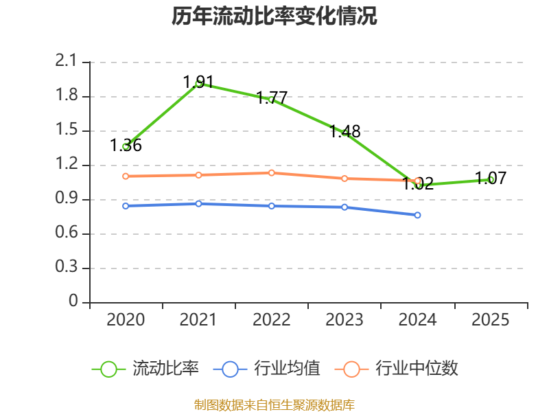 2025年,公司流动比率为1.07,速动比率为0.9。