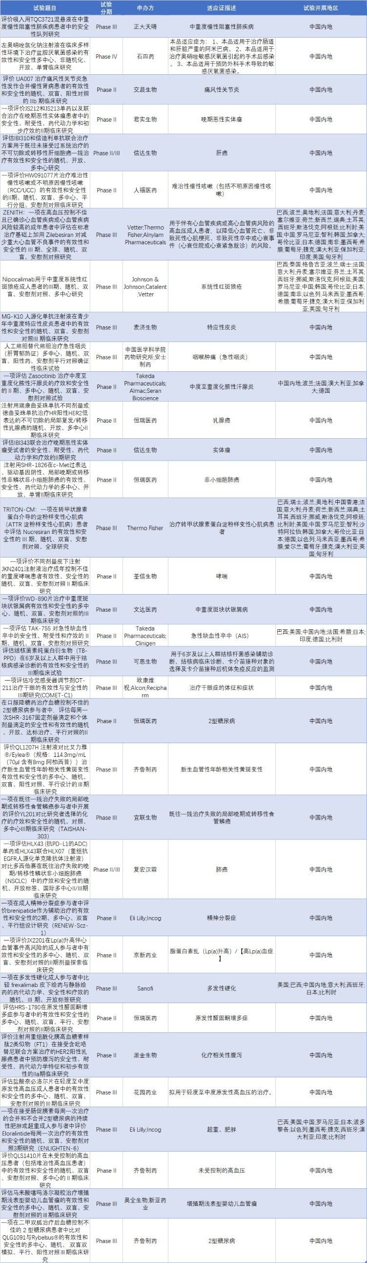 根据医药魔方提供的数据,3月16日至3月20日,国家药品监督管理局药品审评中心共披露108条临床试验登记信息,其中34条为处于临床试验II期及以上的创新药新登记临床试验信息,有3个临床研究项目正在招募患者。
