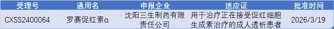 3月19日,中国国家药品监督管理局批准三生制药1类生物创新药罗赛促红素α注射液(新比澳)上市,批准适应证为治疗因慢性肾脏病引起的贫血且正在接受促红细胞生成素治疗的血液透析患者。这是公司在肾科治疗领域的又一重要进展,为广大患者带来更多的选择和获益。