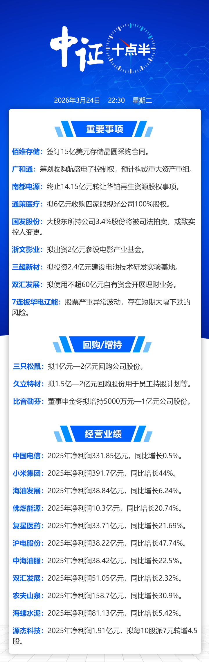 【中证十点半】佰维存储签15亿美元采购合同 多家公司披露2025年业绩