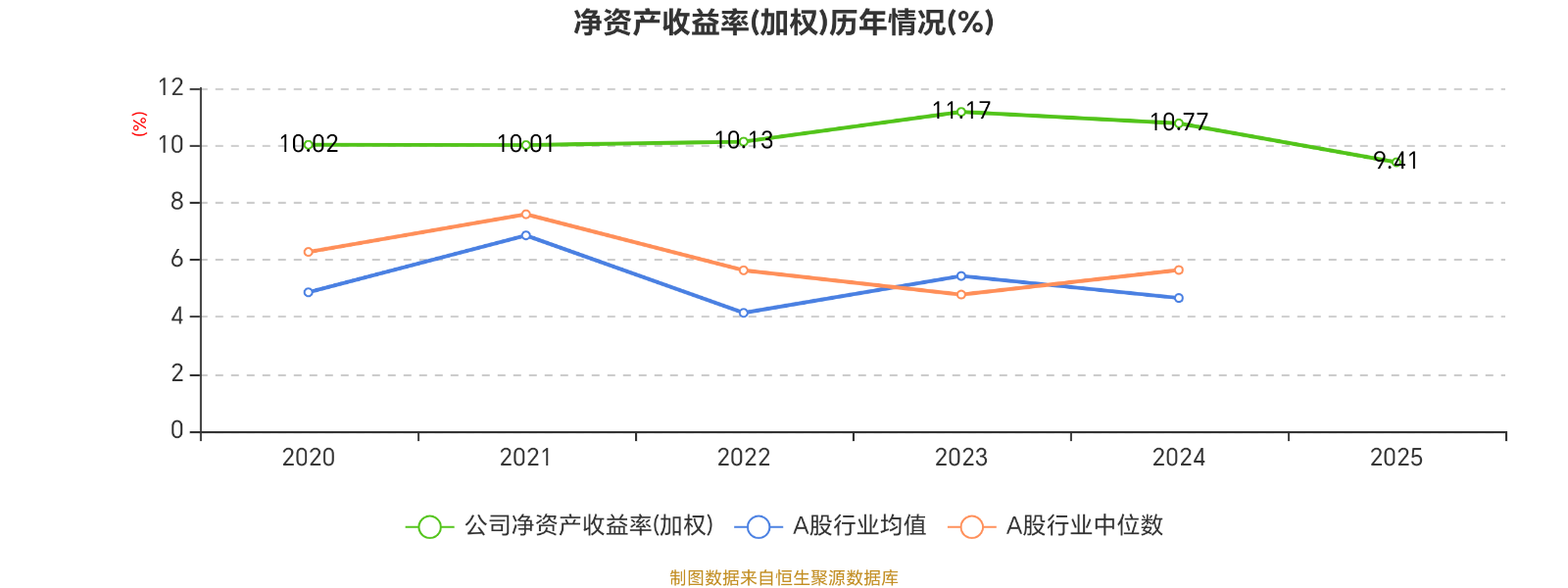 数据显示,2025年公司平均净资产收益率为9.41%,较上年同期下降1.36个百分点。