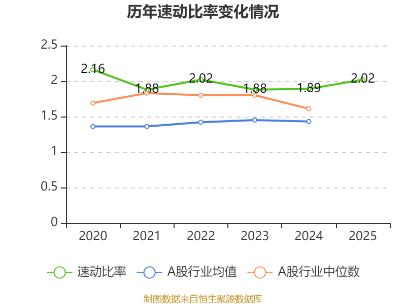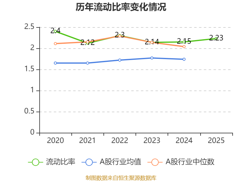 2025年,公司流动比率为2.23,速动比率为2.02。